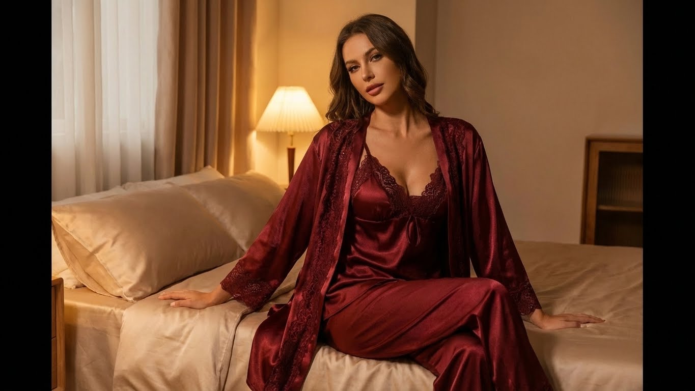 Turkish 6-Piece Satin Nightgown Set for Women